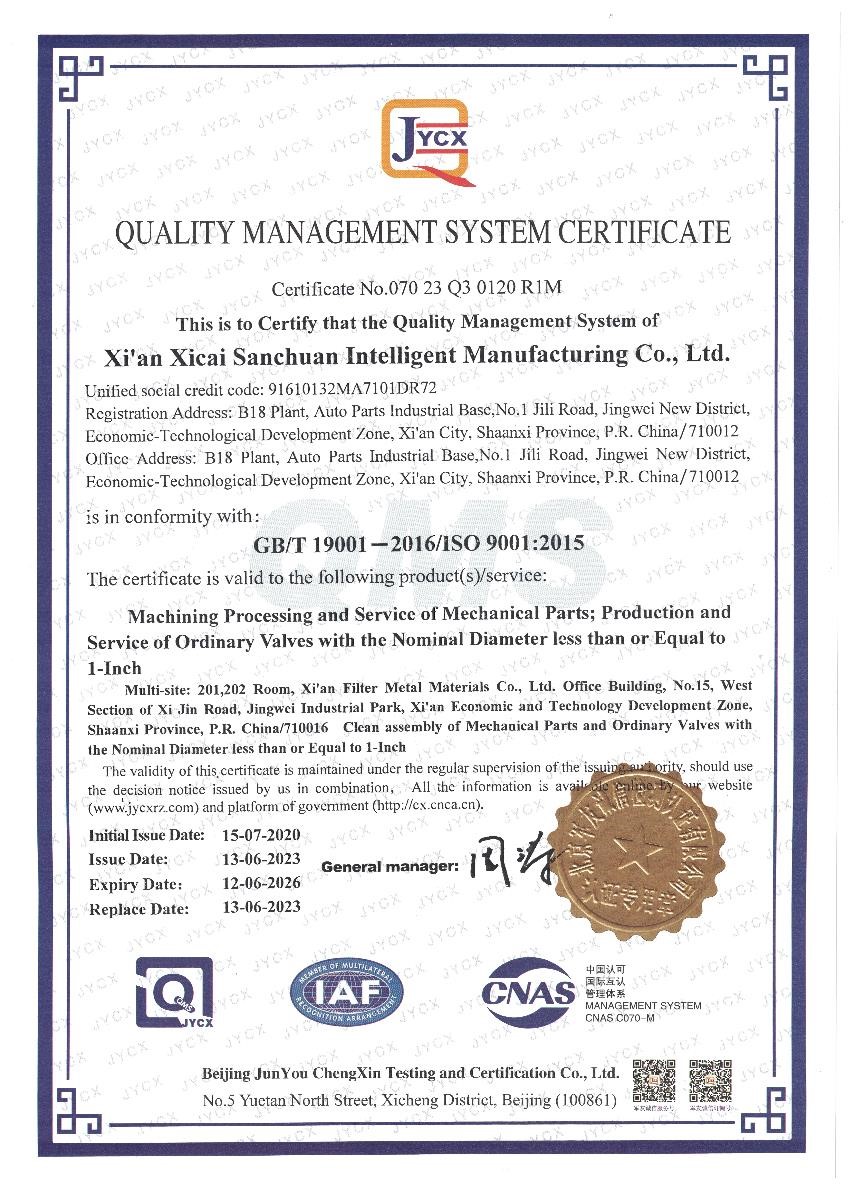 2020年7月15日取得北京軍友誠信檢測認證有限公司的符合GB/T19001-2016/ISO9001:2015標準的質(zhì)量管理體系認證證書